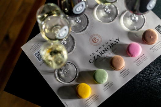 Nessa experiência estão inclusos 5 sabores de macarons, produzidos pela empresa Le Petit de Bento Gonçalves, com os respectivos vinhos e espumantes da Bodega Czarnobay, resultando em uma harmonização inusitada porém surpreendente.