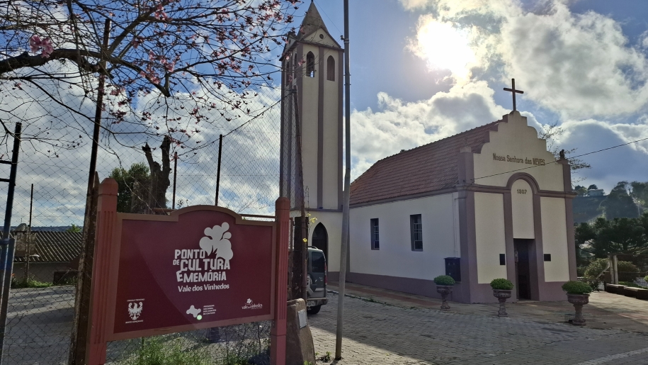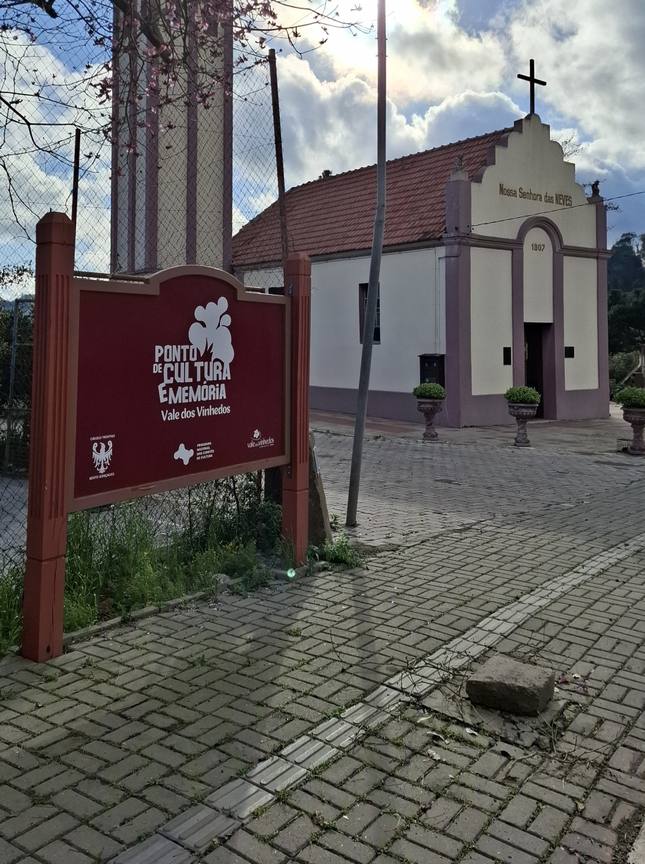 sobre Ponto de Cultura e Memória Vale dos Vinhedos O Ponto de Cultura do Vale dos Vinhedos se dedica a desenvolver atividades, oficinas, cursos e eventos culturais relacionados as origens italianas dos imigrantes locais. Também oferece visita guiada as salas de exposição e à Capela das Neves, lendária igreja construída com vinho.