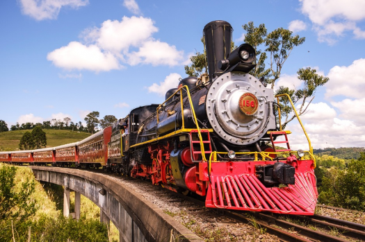 Embarque em um trem à vapor que percorre a ferrovia entre as cidades de Bento Gonçalves, Garibaldi e Carlos Barbosa e assista apresentações culturais que animam os vagões. Durante o trajeto você poderá degustar vinhos, espumantes e suco de uva tinto.